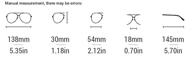 Lens width: 54mm/2.23′ | Bridge Size: 18mm/0.70′ | Temple Length: 145mm/5.70′