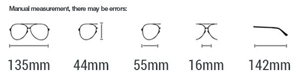 Size: EYE 55mm / BRIDGE: 16mm / TEMPLE: 142mm