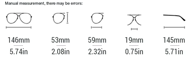 Size: EYE 59mm / BRIDGE: 20mm / TEMPLE: 145mm