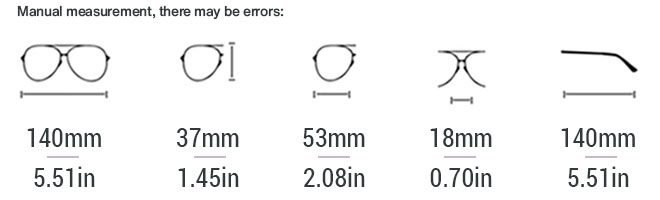 - Lens Width: 53mm/2.08′ | Bridge Size: 18mm/0.71′ | Temple Length: 140mm/5.51′